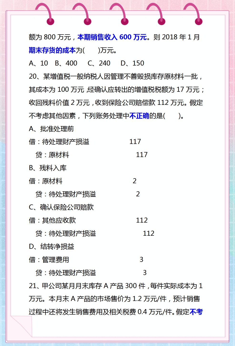 21初级会计实务通过300题,只做十天稳拿20分,附带答案详解!