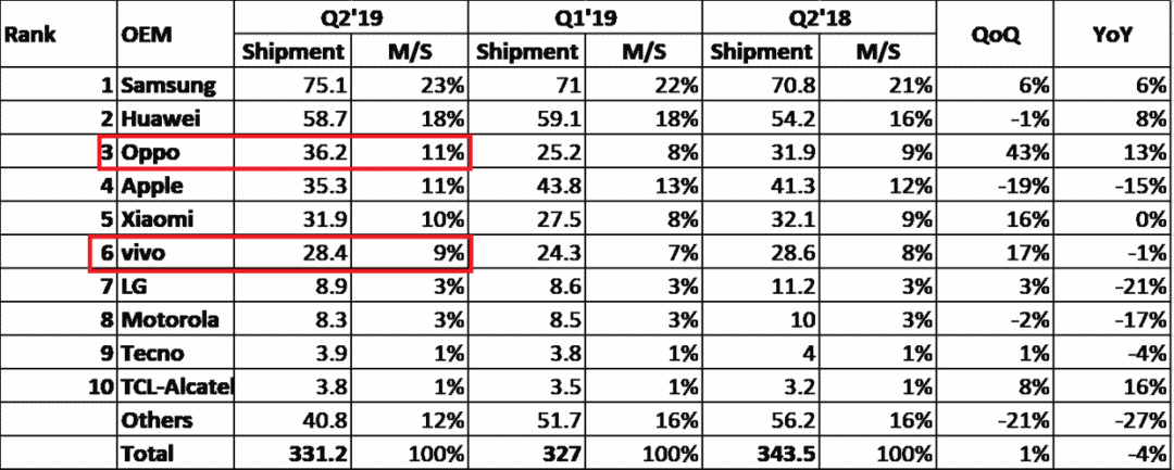 知名市场调研机构 IHS Markit 报告显示,第二季度手机全球出货量发生了一些变化,中国手机品牌OPPO成功超越苹果,跻身前三。