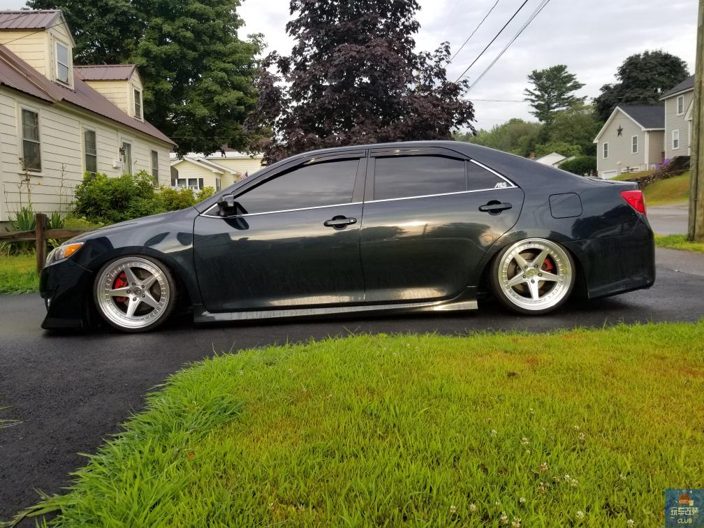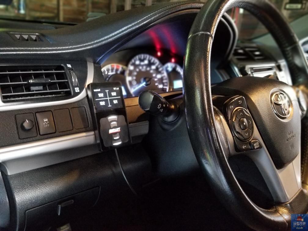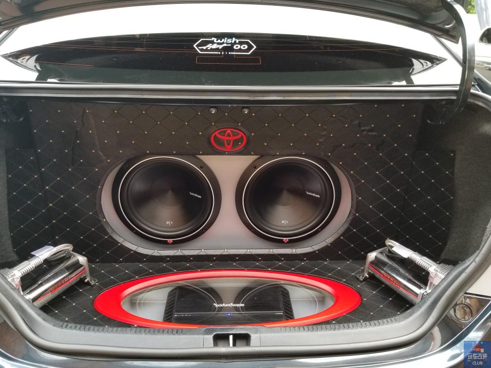 这是一辆2012款丰田凯美瑞,外观部分,全车采用了金属黑色涂漆,Auxbeam大灯,Auxbeam雾灯,性能部分,则换上K&N冷进气,Borla排气系统,Air Lift Performance气动套件,D2 Racing 避震套件,轮上马力达185匹,内饰部分,则换上了Rockford Fosgate 12寸低音炮和Rockford Fosgate扬声器。