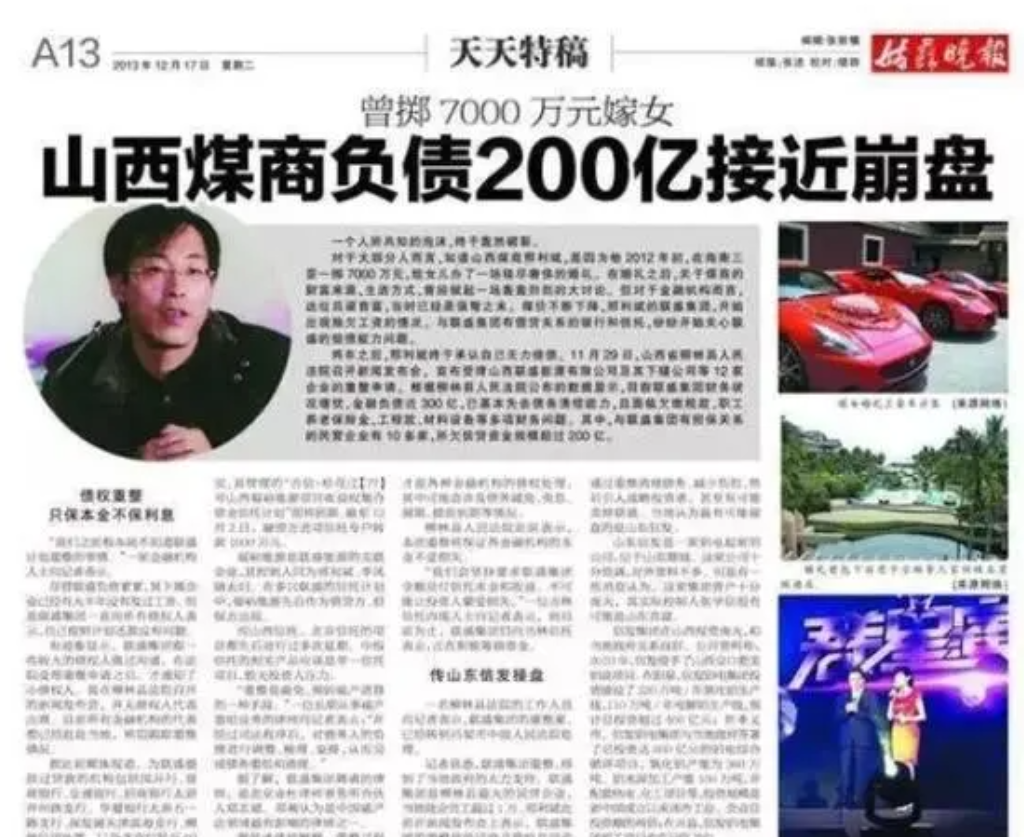 [1]《人民网》,《山西吕梁首富煤老板邢利斌负债近300亿元》