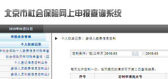 2、在参保人员缴费信息定制业务中选择定制的起止时间。