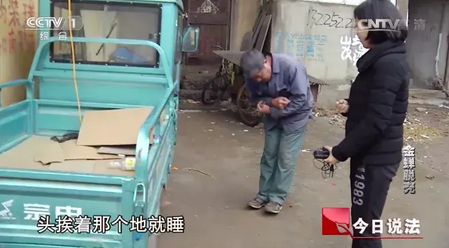 天冷了,大家会给他食物、大衣、棉鞋等等,憨子也会老老实实地在菜市场旁边的电动车下睡觉。