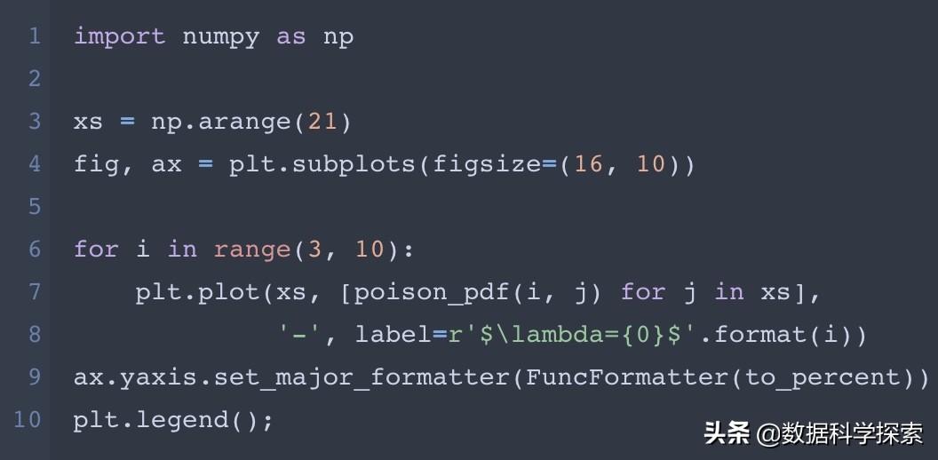 在这里,λ就是我们前边提到的固定时间或空间内的计数的均值,或者叫期望,同时,它还是泊松分布的方差。有了概率密度函数之后,剩下的就是计算了,而计算工作交给计算机来完成再好不过。