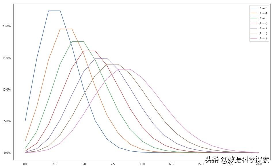 接下来,我们看一下,随着λ的逐渐变大,其概率密度函数的形态会发生什么变化。