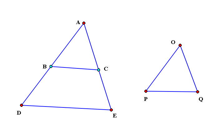 ΔADE和ΔOPQ中,AD:OP=AE:OQ=DE:PQ.