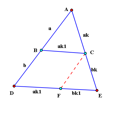 设AB=a,BC=b,得AC=ak,CE=bk。
