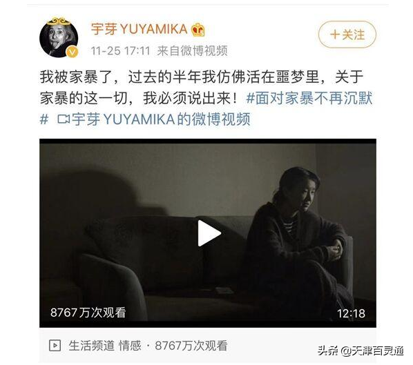 11月25日下午,凭模仿蒙娜丽莎妆容成名的重庆美妆博主宇芽通过微博上传视频,写道:“我被家暴了。”并表示对所有话语负责。
