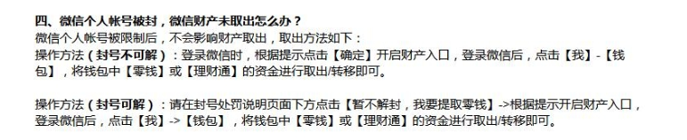 微信被封,账户中的资金如何取出,其实微信是有一套完整的制度的;对于暂时性被封的,在申请解除封号的状态下即可再次正常进入微信,提取资金(当然你暂不解封也可以申请临时进入);对于永久性被封的,微信是允许用户临时登录进去取现的(不过临时登录的次数有限,一般最多为3次);临时登录的入口(详见下图),通过这个入口你就可以将资金全部取出,不过临时登录只能够操作除资金转出的功能,其余任何功能都无法在使用了。