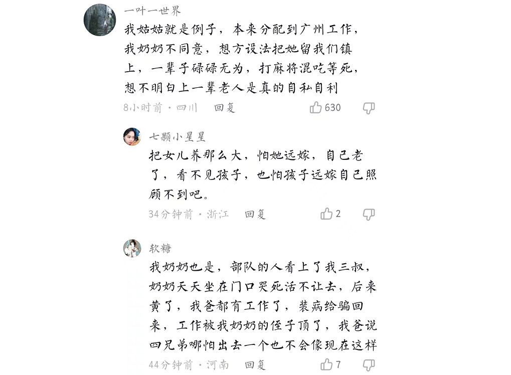 女生说完这件事情之后,很多网友也发表了自己的看法。有网友表示可以理解家长的做法,不少学生去了大城市读书之后,就不回来了。