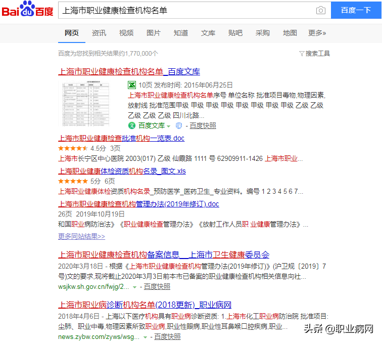 比如百度文库、豆丁、豆瓣等,直接搜索“×××省/市职业健康检查机构名单”、“×××省/市职业健康体检机构名单”或者“×××省/市职业健康体检资质单位名单”。