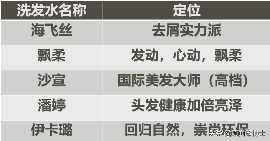 下表是宝洁旗下的洗发水品牌和它们分别的定位,我们知道宝洁有多个洗发水品牌,但是每个品牌的洗发水都有自己独特的定位。在这些定位的背后对应的是不同的消费群体,从而能够更有效地获取到所需的营销信息以便于市场管理。