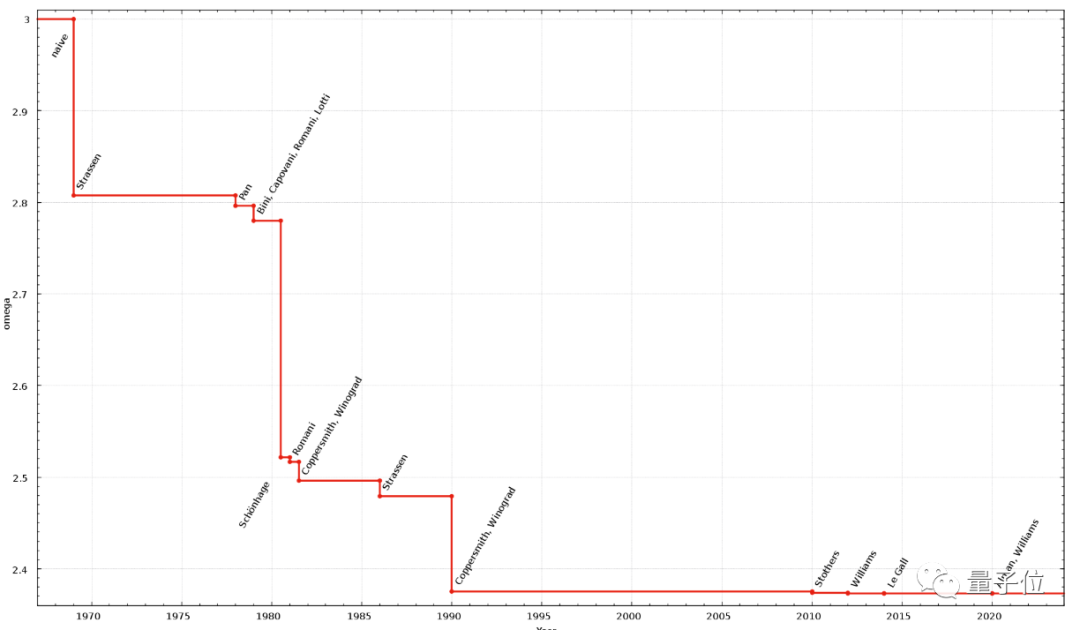 而科学家们努力的目标,是使n阶矩阵乘法的时间复杂度尽可能接近理论上的最快速度O(n²)。