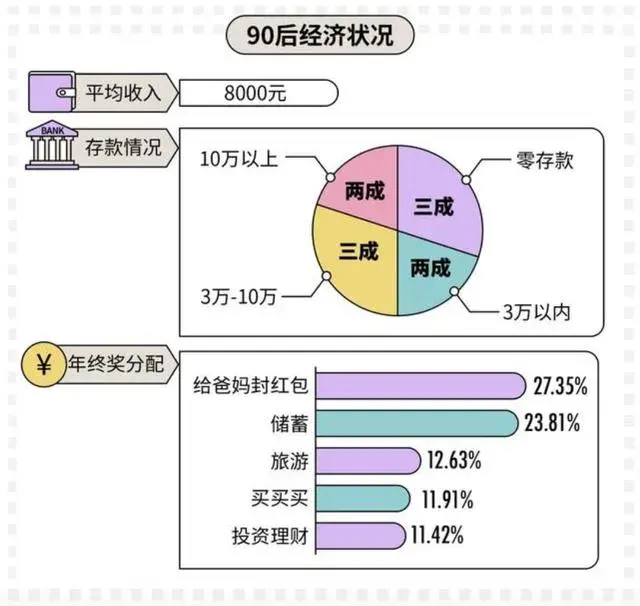 报告显示:90后平均月收入为8000元,其中有2成90后月收入超过1万。