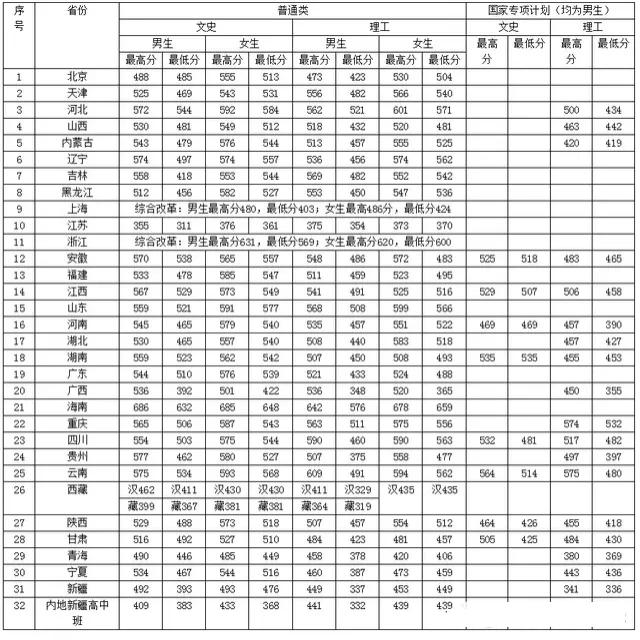 中央司法警官学院各省录取分数线
