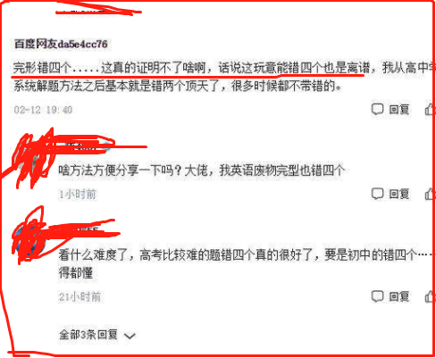 这名大专学生这套试题仅仅错了4道题。这套试卷是4星的难度。就算拿到本科院校,也没有学生说自己可以百分百地都答对。但这名大专学生把自己做的试题发到网上后,结果却有点出人意料。