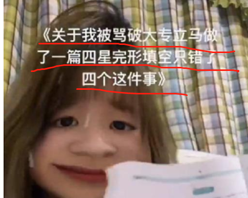 这时就有一位女大专生,被别人嘲讽“你考的就是一个破大专”。这句话看着就有点伤人了,大专生怎么了。于是为了证明自己的能力,该名女大学生连夜做了难度有四星的英语题,来证明自己。