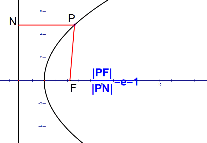 到定点F(焦点)的距离与到定直线l(准线)的距离的比是常数e(离心率)的点的轨迹。