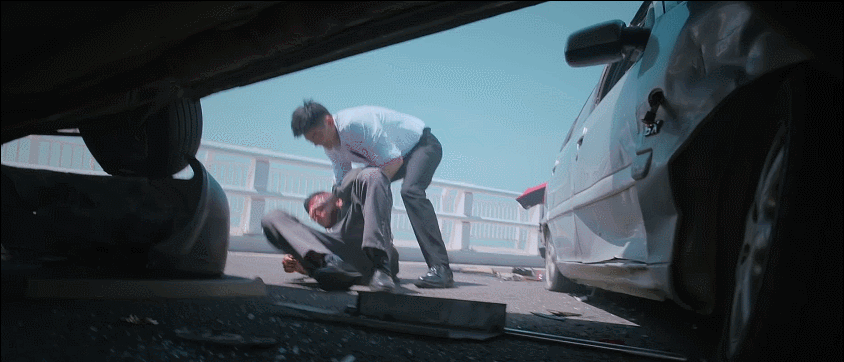 开头撞车营救戏份里,就有大量这种晃动的镜头营造紧张气氛。