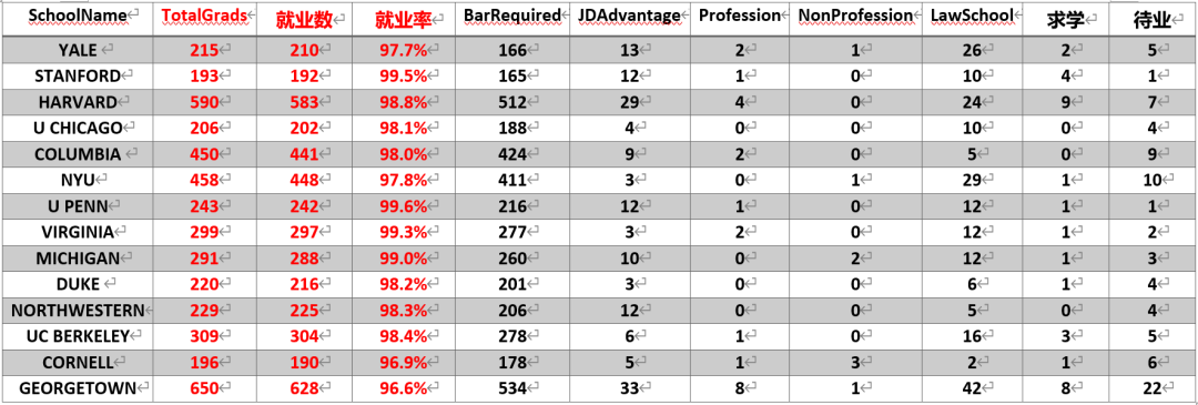 ABA的披露要求共有五类职位状态。下面我们一起看看这五类工作都有什么特点,以及各大学校的数据情况如何。