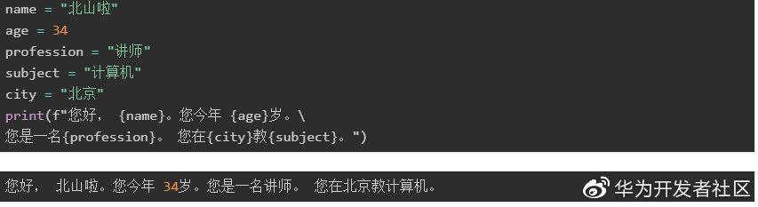 可以看到,一旦参数比较多,在使用format()的时候,需要做比较多的无用功。其实如果能直接在{}中,和变量直接一一对应,那就方便很多了。可以使用f-string改成