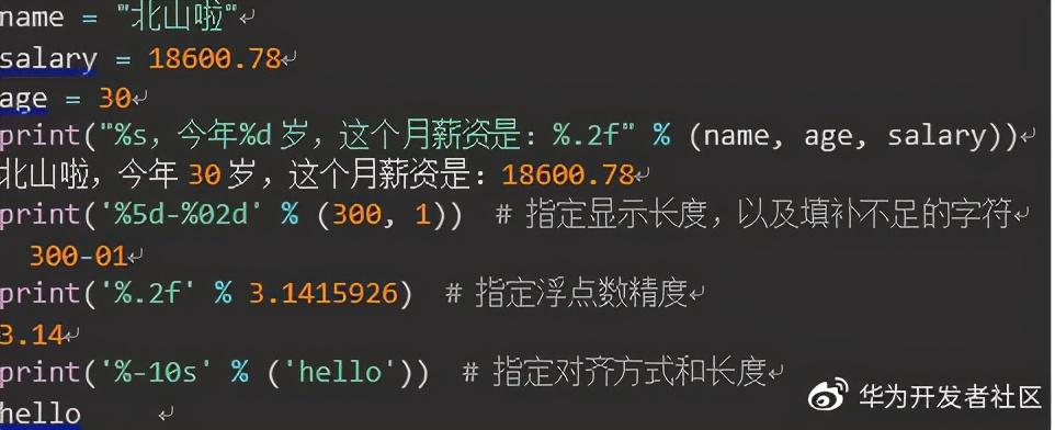 这种方式可以实现我们的目的,但它在可读性和性能上都不够优化。所以在Python中陆续提供了三种格式化字符串的方式。我们先来看第一种:使用占位符%。如果将上面的代码改成使用%占位符,它可以修改成如下: