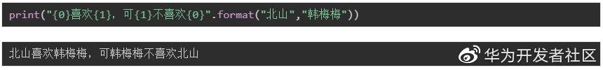 如果A、B待定,用前面的格式化方式定义如下:”%s喜欢%s,可%s不喜欢%s” %(“A”,“B”,“B”,“A”)