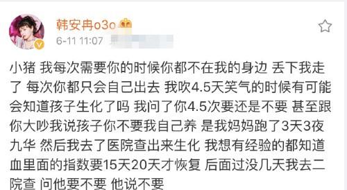 不过韩安冉的确不一般,和前夫撕得那么难看后,还是为对方生了一个孩子,更奇葩的是两人还直播了生孩子。