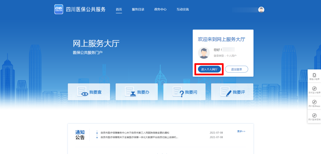 “四川医保公共服务”网厅
