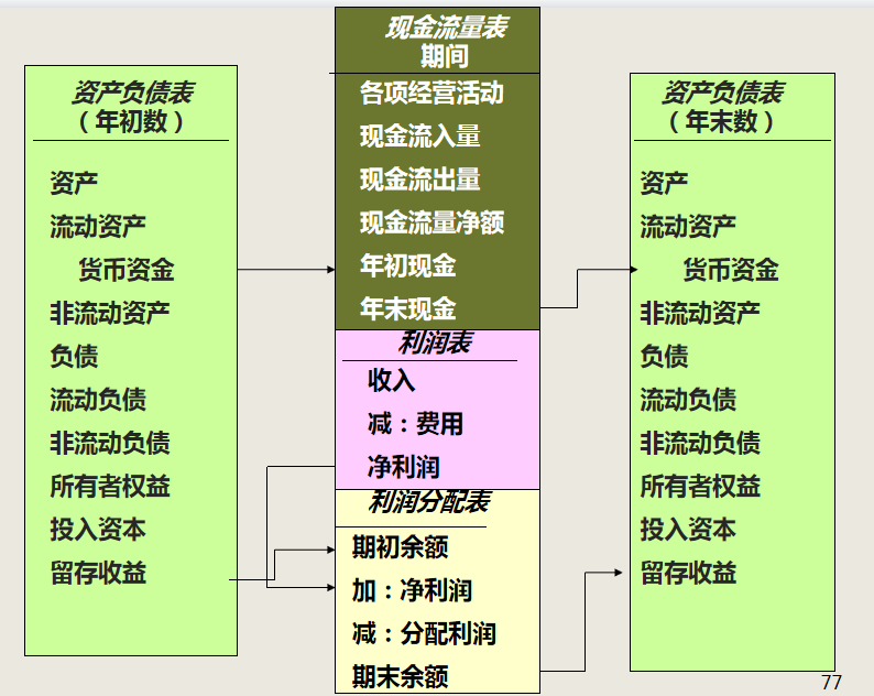 三大报表之间有勾稽关系,衔接关系等等关系,这些关系可合可分。“合”则成一张财务报表,可以更加直观地看出公司某一阶段发展的情况。“分”则用三张报表展现企业发展各部分的长短处。由此可见,财务报表的重要性,财务报表之间关系的重要性。下面就让我们一起来看看这份财务报表之间的关系吧!