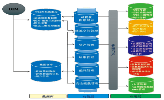以处理后的BIM模型为依托实现对大型公共建筑的综合信息、空间租赁、维护维修、设备运行状态监测与控制、结构健康监测、能耗评估以及灾害模拟与应急决策等方面的管理,提高运维阶段的工作效率和信息化管理水平。
