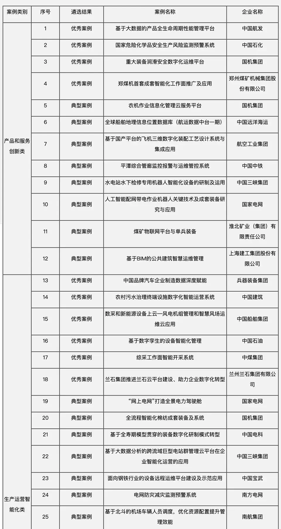 这些案例的类型包括:产品和服务创新、生产运营智能化、数字化营销服务、数字生态、新一代信息技术、工控安全、两化融合管理体系和综合等8类。