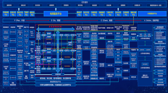 “网上电网”贯通源网荷档案,承载能量流变动,感知信息流预警,汇集全空间资源,纵贯多时态电网,直观展示现状电网,回溯复盘历史断面,仿真展望规划蓝图,按需呈现、层层穿透、可视透明,实现问题图上说、规划图上做、计划图上管、成效图上看,利用电网导航技术打造全景电力驾驶舱