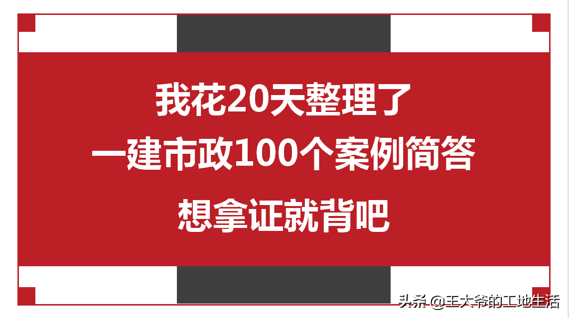 我花了20天,把一建市政教材和历年真题考点翻了个遍,整理出来100个案例简答,22年考友们建议收藏。