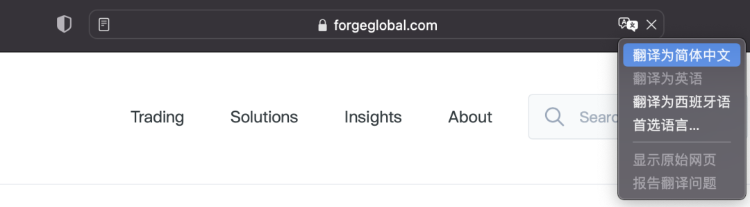 第一个工具是 Mac 自带的 Safari 浏览器的翻译功能,很好用。首先它非常便捷,两次点击即可翻译成中/英文,而且比较准确,能够满足绝大多数简单的翻译场景。