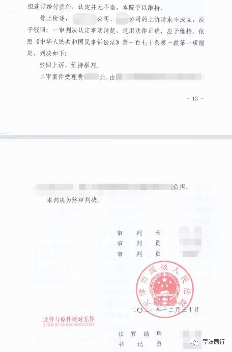 2021年12月30日,天津高院下发裁定:“维持原判,驳回上诉”。