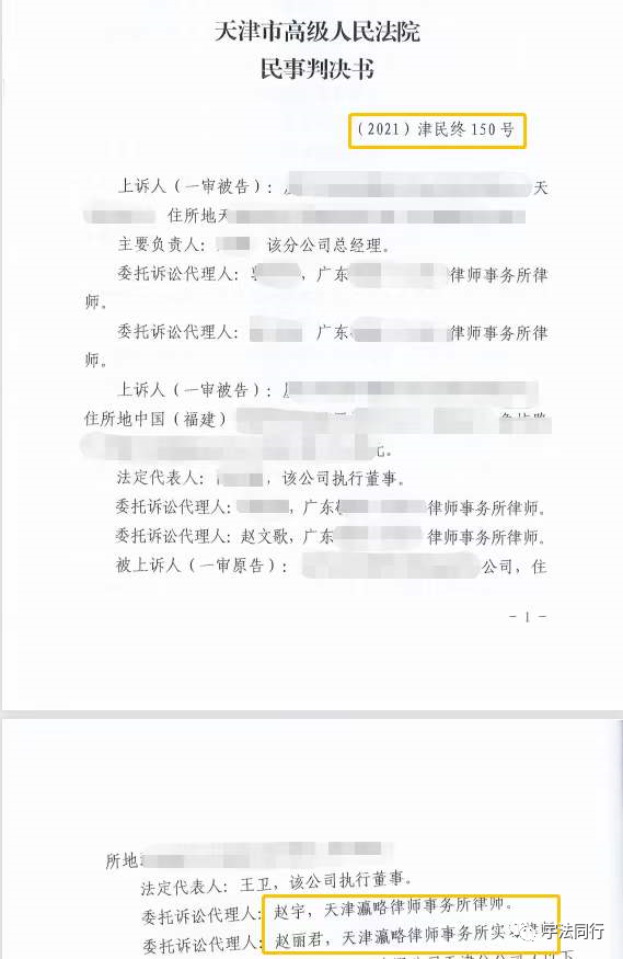 2022年开门喜:赵宇律师喜获天津高院胜诉二案判决[赞]。