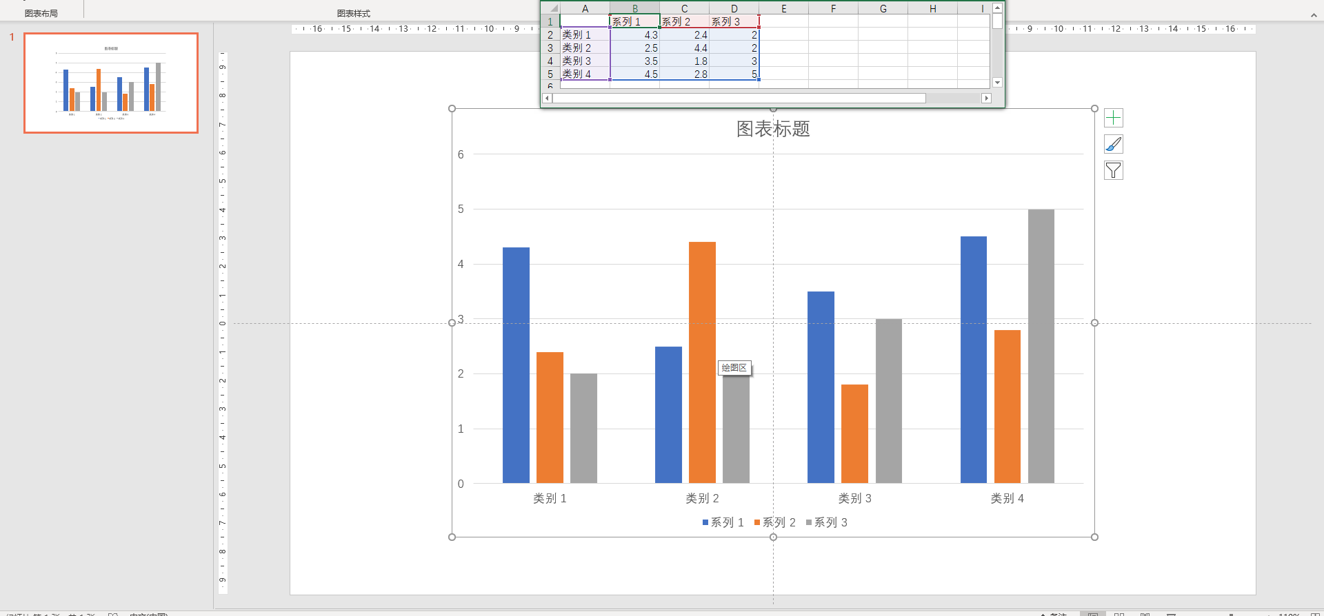 相比于PPT中默认的柱状图,数据之间的间距增大了,这样做的好处就是保持数据图视角上的平衡。