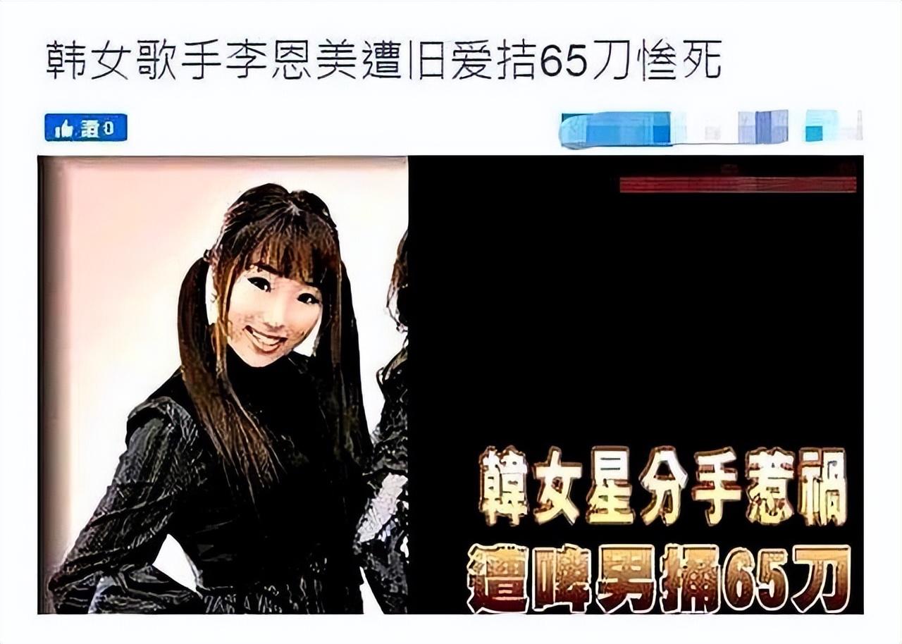 2011年6月19日凌晨两点,韩国歌手李恩美被前男友连捅65刀,被邻居发现时已经血流如注,奄奄一息,最终不治身亡,年仅24岁。