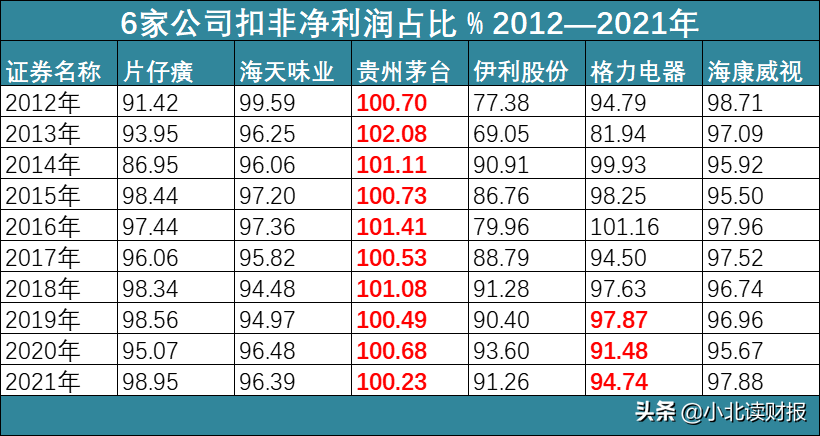 这类公司的净利润中80%-90%以上均来自于主营业务,营业外收入或投资收益的占比很低。如果一家公司长期需要政府补贴、资产处置或投资收益等非经损益来熨平业绩波动,那么这家公司主营业务的经济护城河可能难以持续。