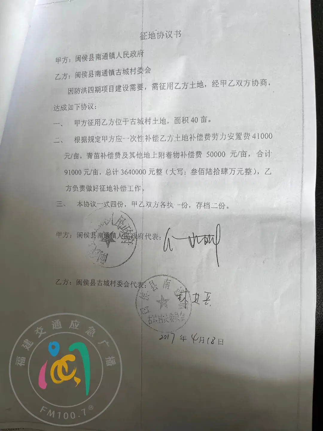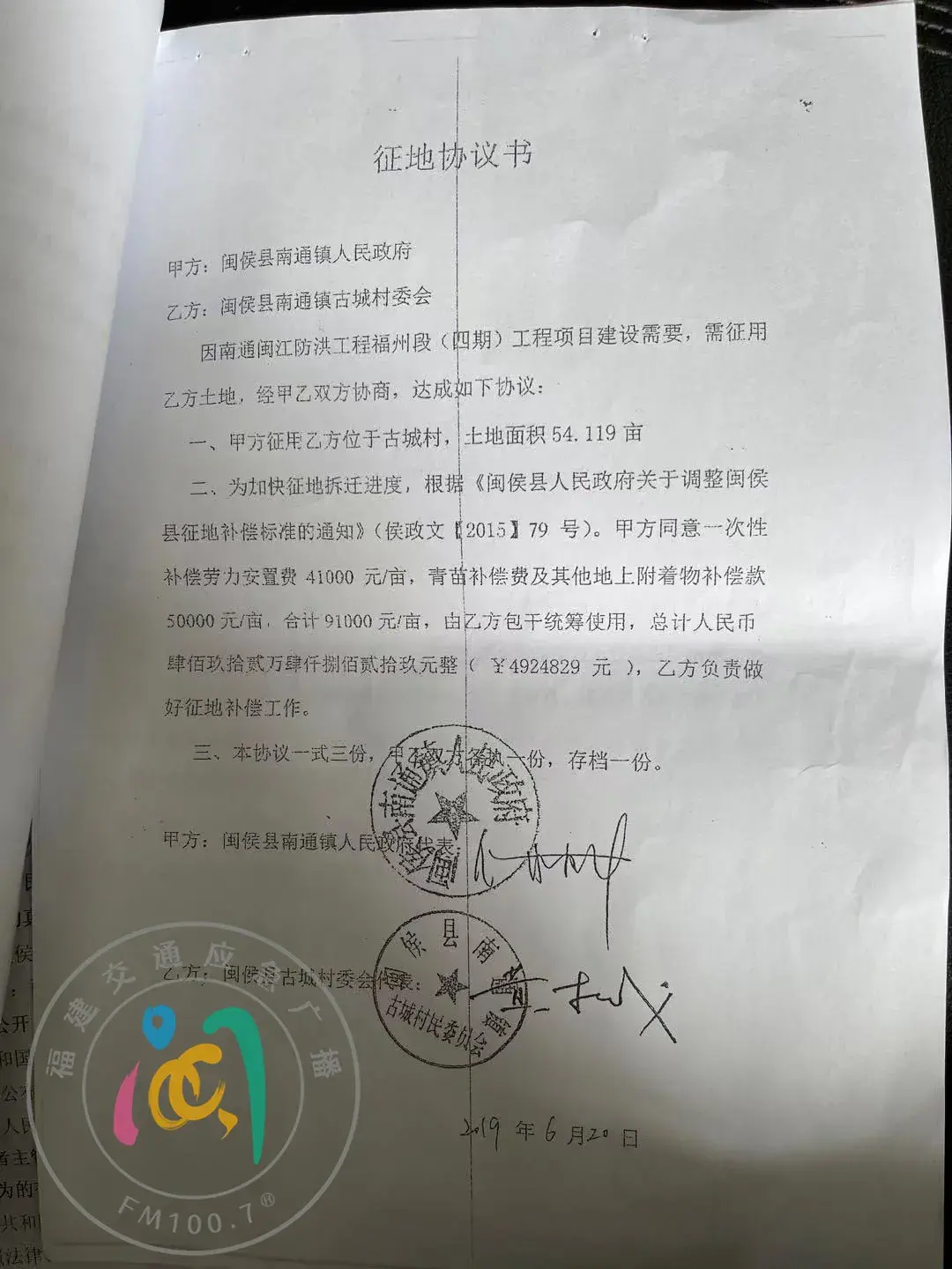 6月9日,1007报道了福州闽侯县南通镇古城村镜口自然村王先生的爷爷在2019年2月就已经离世并火化,当地村委会却贴出了一张他爷爷于2019年3月签订的征迁补偿协议书一事,迅速引发热议。