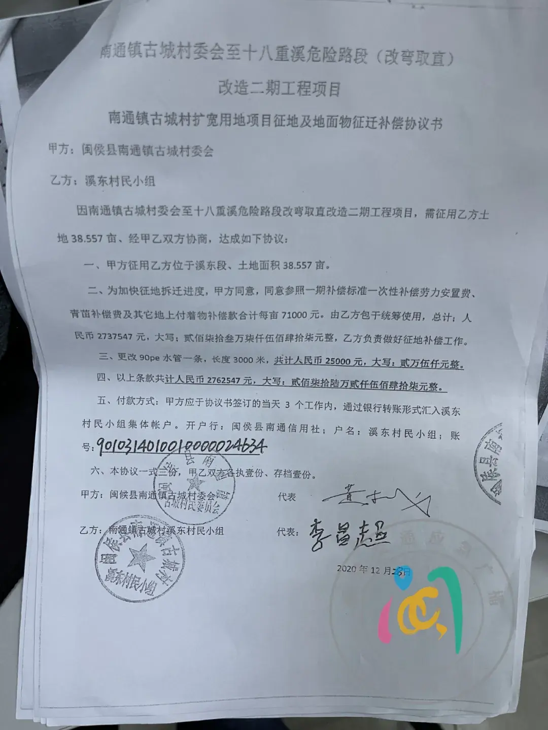 但王怀说,古城村村委会却绕过了镜口自然村,直接和村民签订补偿协议书。“这个肯定是违法的,因为自然村才是土地所有权人。我们隔壁的溪东自然村拆迁的时候,补偿款就是打给自然村,再由村民内部商量如何分配。古城村委会之所以这么做,就是想暗箱操作,谁和村支书或者村委会委员关系好,补偿金就可以多拿一些。”