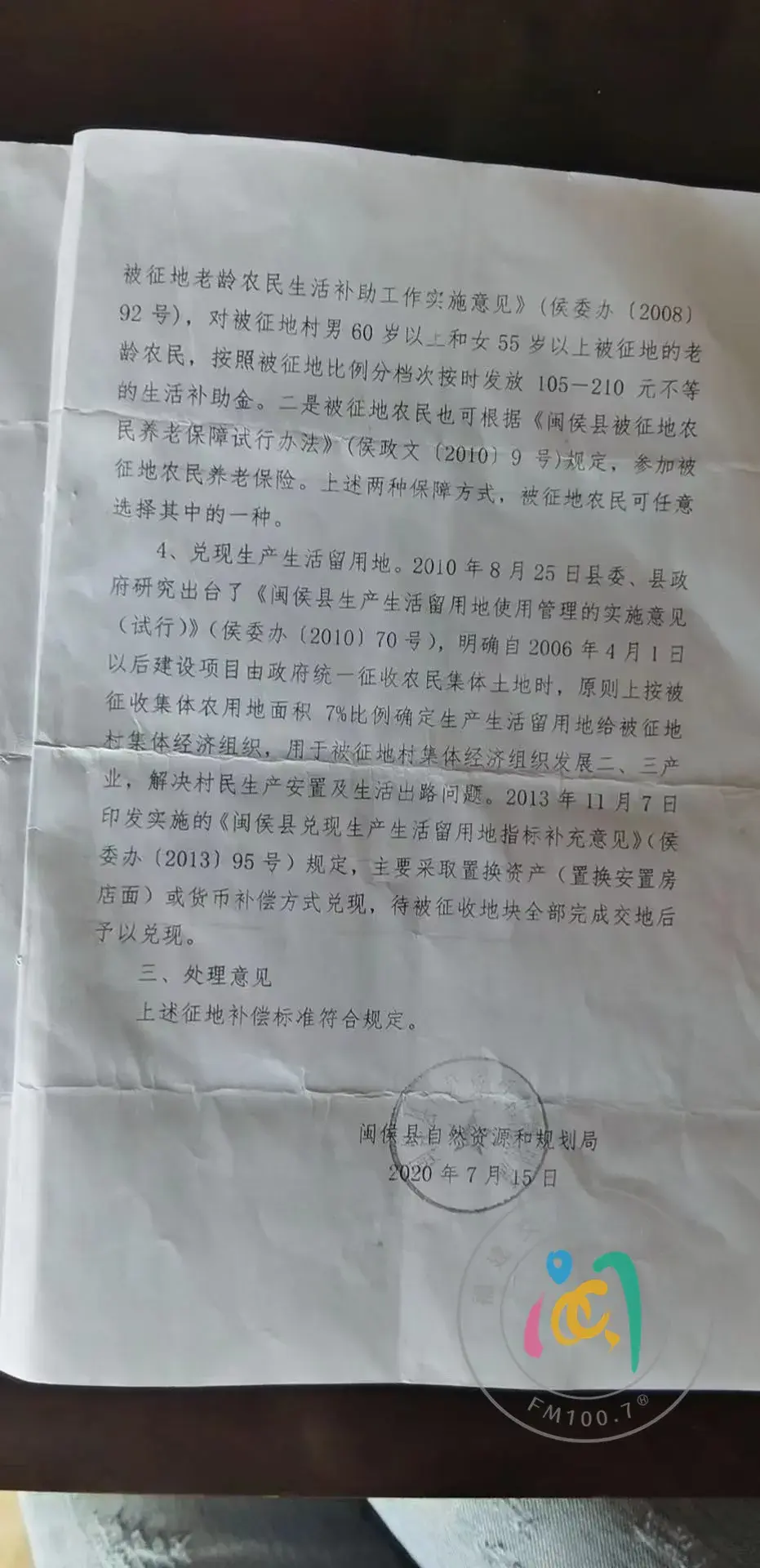 王怀说,自己针对此事还向福州12345进行了咨询,闽侯县自然资源和规划局早在2020年7月15日就已经回复:这个项目的征地属于正常征地,相关赔偿标准也是按照正常集体土地的标准进行。“这已经在事实上证明了,黄桂诚书记所说的拆掉的是防洪堤堤坝的说法是靠不住的,被拆迁的地是属于我们镜口自然村的,古城村村委会截留补偿款明显违法了。”