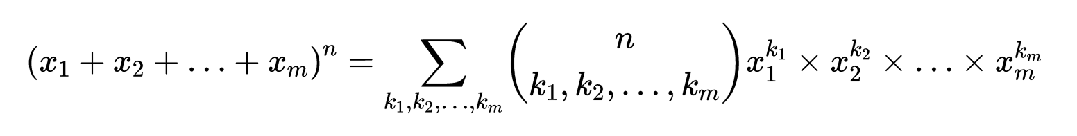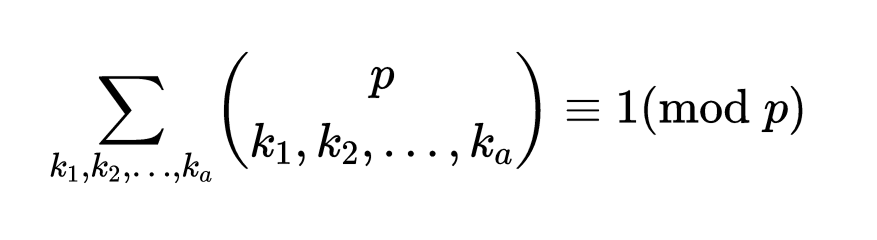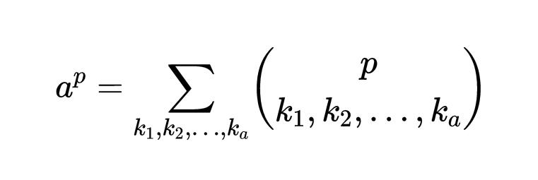 这个求和是通过kₐ得到的所有非负整数索引k₁的序列,这样所有kᵢ的和就是n,如果我们把a表示为1的p次方的和(1 + 1+ 1+…1ₐ)ᵖ,我们得到:
