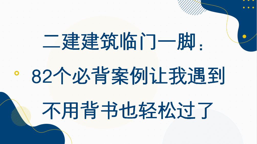 幸好让我遇到了这82个二建建筑必背案例,内容涵盖了往年二建建筑真题9成以上的必考点、重要考点,都是从近10年的真题里所有的案例分析题一个个地筛选出来的,紧密贴合真题命题规律和范围的。