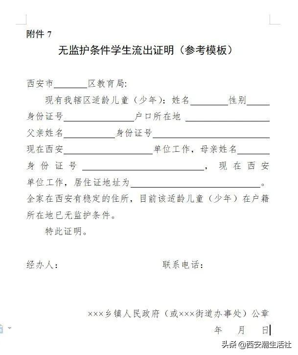 适龄儿童少年户籍所在地乡镇人民政府或街道办事处开具的务工人员子女在户籍地无监护条件,同意学生流出接受义务教育的证明。