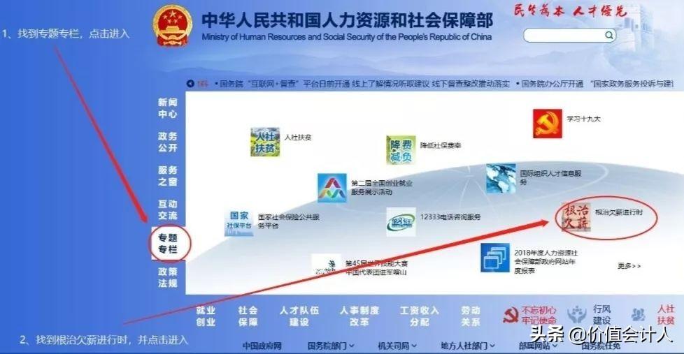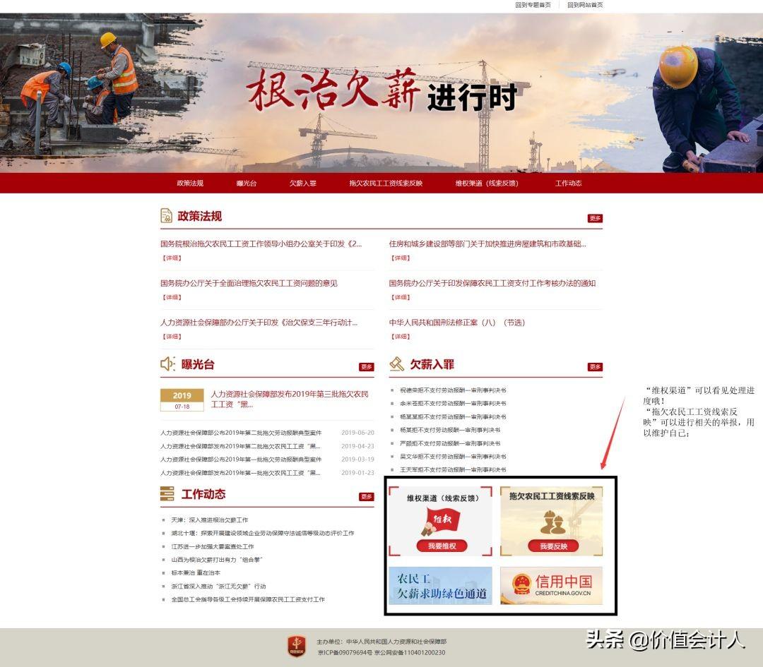 2.根据图示点击专栏,进入“根治欠薪进行时”页面