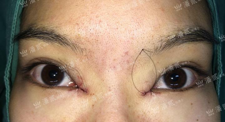 患者希望包小一点,希望能在保留眼睛长度的情况下遮盖疤痕,其实这两者是有一定矛盾的。因为上次手术所留的疤痕的面积和位置,决定了本次包眼角手术的难度。