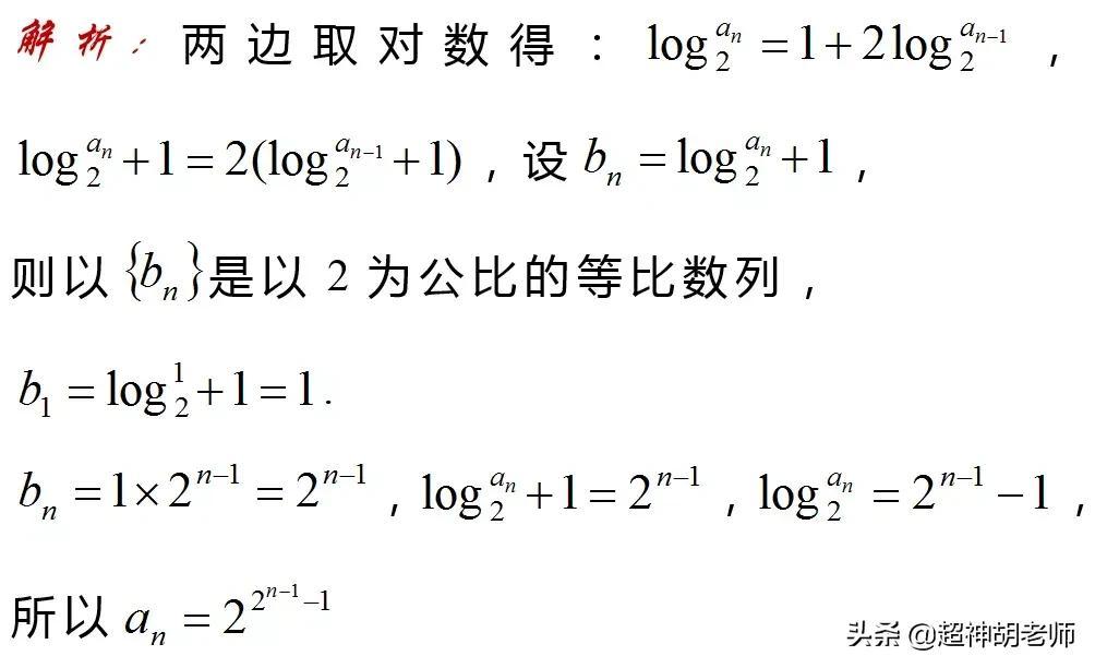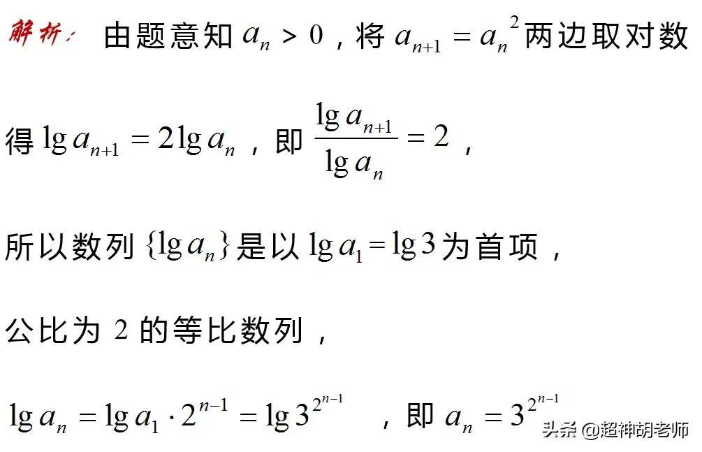 前提数列是正项数列,才可以左右同时取对数。另外所取对数的底数,取决于系数