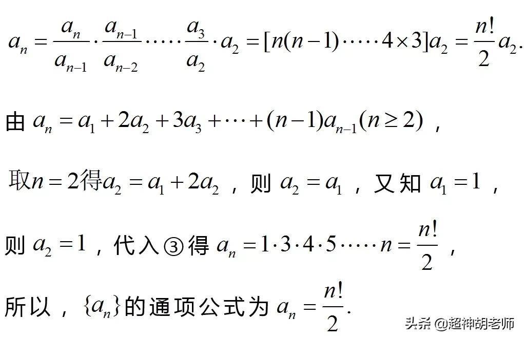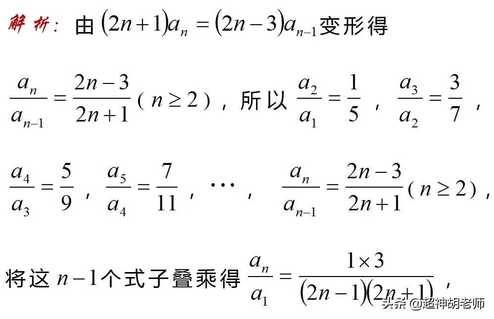若题设中含有或通过变形整理可得递推关系an+1=f(n)an,其中{f(n)}是可求积数列,则可考虑利用累乘法求数列的通项公式。