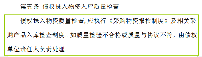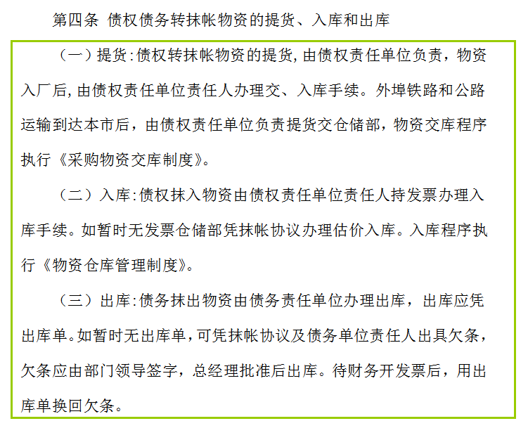 第四条 债权债务转抹帐物资的提货、入库和出库